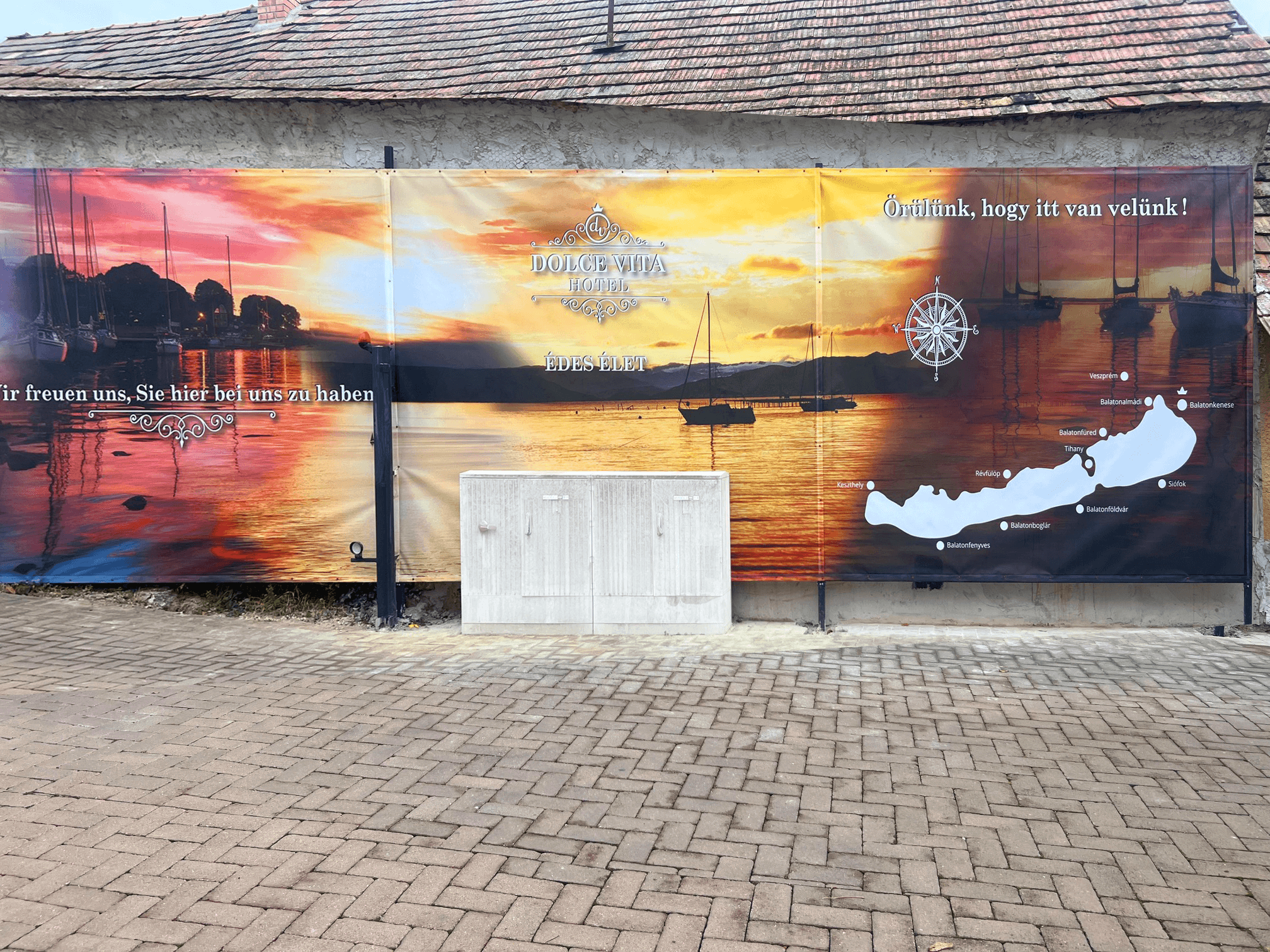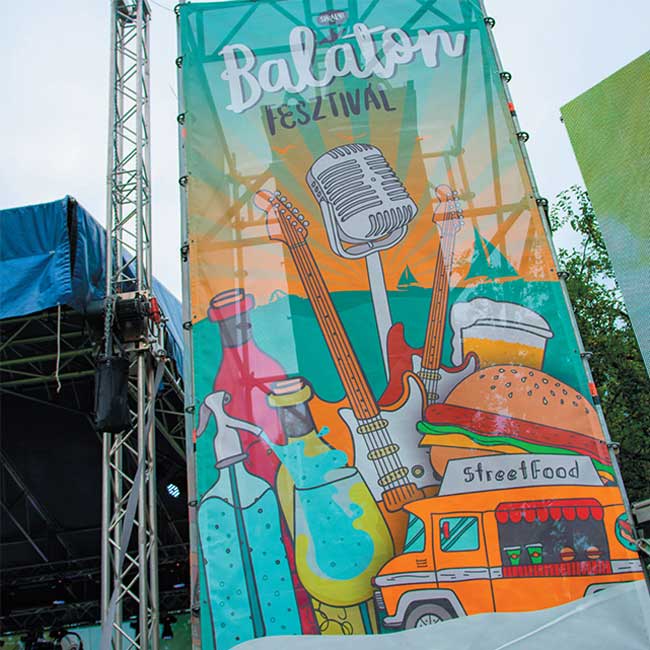 Das großformatig bedruckte Werbematerial ist perforiertes Gebäudegewebe, auch als Mesh-Gewebe bekannt. Es ist ein langlebiges, hochbelastbares und kostengünstiges Druckmedium für den Innen- und Außenbereich. Dank der perforierten Oberfläche des Materials erfasst der Wind es nicht, was es für riesige Drucke auch an der gesamten Außenfläche von Gebäuden geeignet macht. Der fertige Druck kann mit Hilfe von Metallringen leicht an der Fassade, Brandwand, auf Gerüsten, Bühnen oder überall im Innenbereich gespannt werden. Neben traditionellen quadratischen Formen können auch beliebige Formen erstellt werden, sodass auffällige und einzigartige Werbung gestaltet werden kann. Die Außenlebensdauer des bedruckten Gebäudegewebes in einer gut gesicherten Umgebung beträgt 4-5 Jahre.