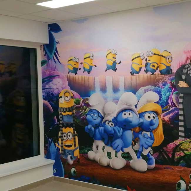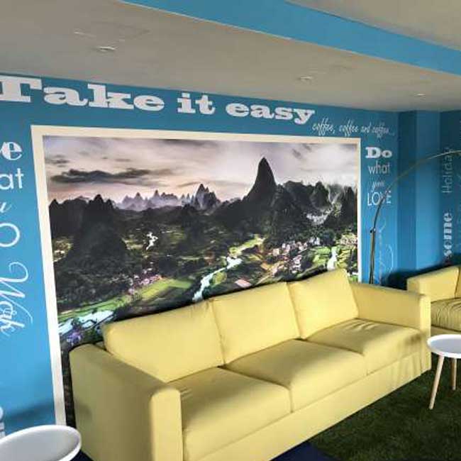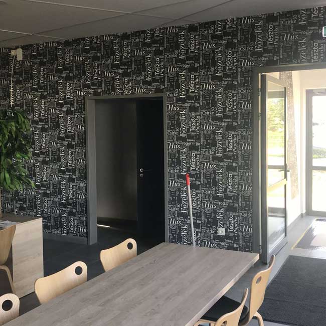A tapéta dekoráció előnye, hogy olcsó, de mégis személyre szabott designt biztosít a vállalat számára. Ajánlott azonban, hogy nagy, vagy teljes felületre legyen tervezve a faldekorációt, mert akkor látványos igazán ez a díszítési módszer.