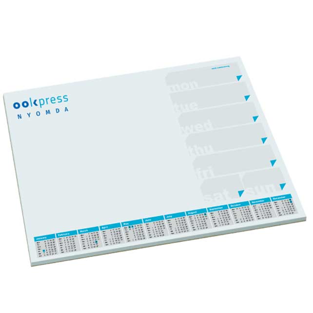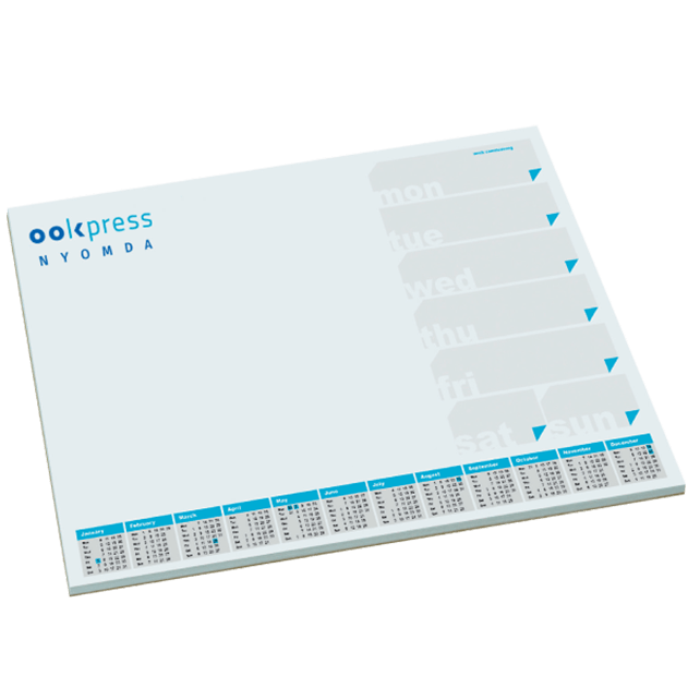Bár népszerűsége az utóbbi időben csökkent, az igényesen elkészített könyöklő nem csak reklámajándéknak kiváló, hanem helyettesítheti a naptárat is. Az íróasztalon mindig kéznél van, egy praktikusan megtervezett grafika nagyban megkönnyítheti az irodai munkát. Céges arculati elemekkel tehetjük egyedivé a könyöklőt, így partnerünk minden nap találkozhat vállalatunk logójával.