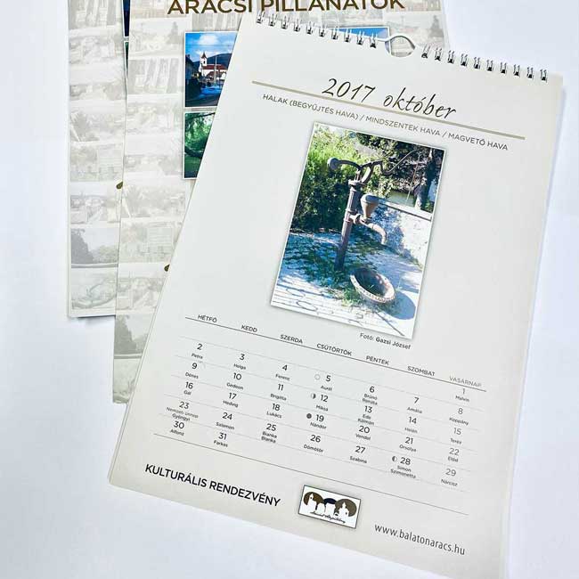 A naptárakba jellemzően nem jegyzetelnek, így alapanyaguk is eltérhet a megszokott papír termékektől. A termék szezonális jellege miatt elkészítésüket legkésőbb év végére kell időzíteni, hiszen január elsején már a helyén kell lennie, ezért érdemes időben elkezdeni a kivitelezést.